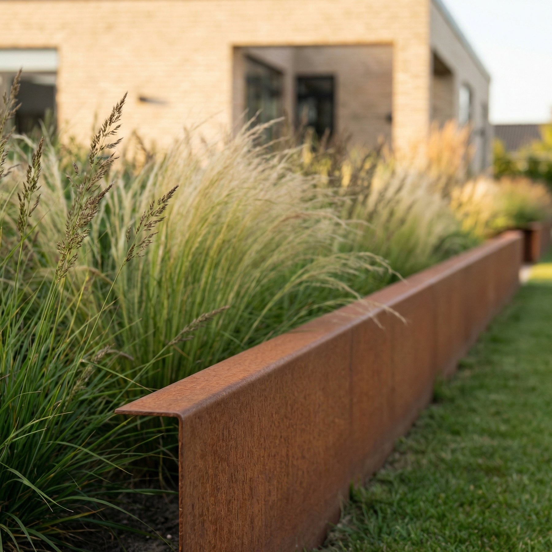 Bøyd bedkant i 3 mm cortenstål med en attraktiv patinafinish. Perfekt for å avgrense bed, stier, holde robotgressklipperen unna grøfter og mye mer – mulighetene er uendelige.