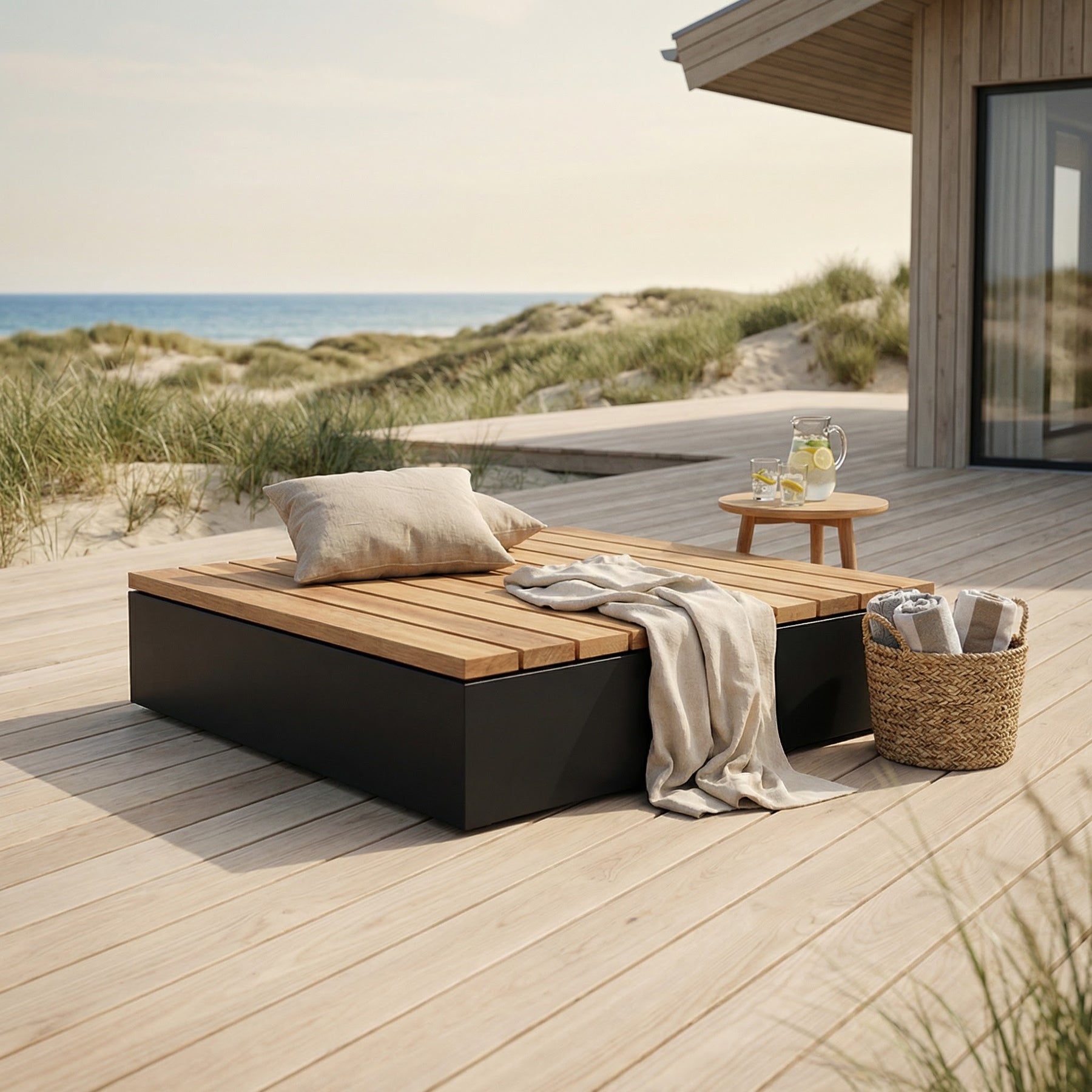 Treverket er ubehandlet. Over tid vil det bli grått på grunn av eksponering for vind og vær. Det er også mulig å olje det slik at det beholder sin gyldne farge.
