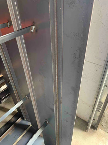 Avstivningen gir ekstra stabilitet og forhindrer deformasjoner på grunn av jordtrykket. Bildet viser et eksempel på en avstivning som er sveiset på innsiden langs langssiden av plantekassen. Vi gjør dette på alle våre plantekasser med rette kanter.